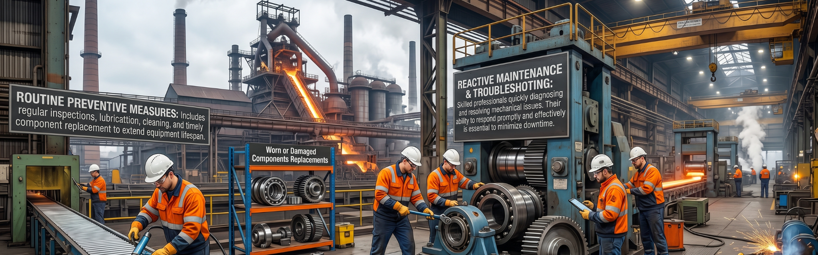 Mechanical maintenance plays a vital role in the smooth operation of industrial production systems, particularly in environments such as blast furnaces, steel plants, and rolling mills. It involves the upkeep, repair, and troubleshooting of complex machinery to ensure consistent performance and high-quality output.